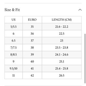 Labeled size Women’s 38 Which according to the brands size chart is equivalent to a US size 7 - 7.5 So I am listing as a 7