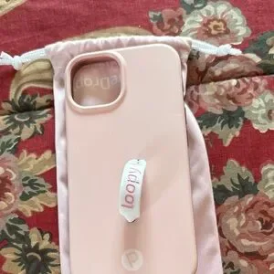 Elegant loopy case in blush pink. Offers style and protection for your phone.
