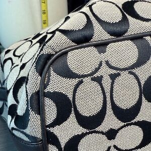 Stylish Coach tote with signature pattern and tri-color hang tag. Outside is in excellent condition. Piping is perfect. This girl never sat on the floor!! ♥️