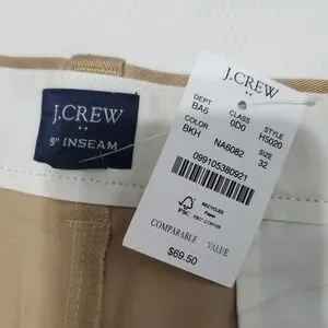 J. Crew Flex Chino Shorts 9" Khaki 32 Waist NEW