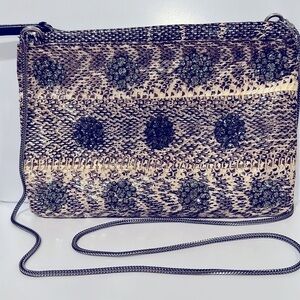Snakeskin on outside with beautiful embellishment jewels. No marks on snakeskin or any missing jewels.