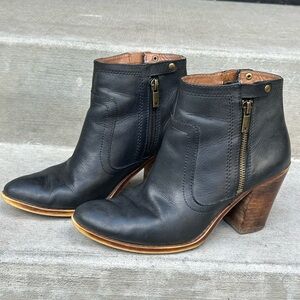 Lucky Brand Dual Zip Leather Ankle Boots Size 7.5/8
