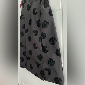 COS black V-neck sleeveless dress with abstract velvet pattern. Zipper and hook eye closure on back. Has pockets and 2 slits in front and back. Very good pre owned condition. Only worn a few times. 17” across chest and about 33” shoulder to hem.