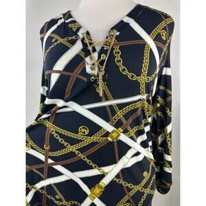 Michael Kors Chain Belt Print Mini Dress or Tunic Top Large Black Gold *No Belt