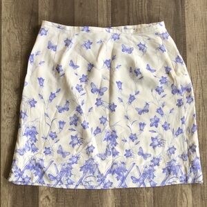 Escada Ivory and Blue Floral and Butterfly Mini Silk Skirt 36