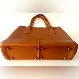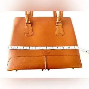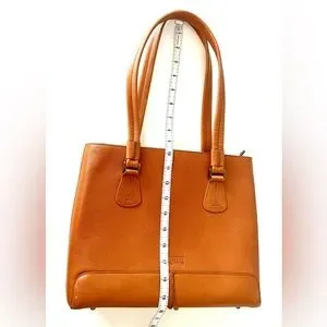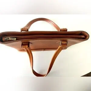 Elevate your style with the Lottusse Tan or Cognac Leather Women's Bag. Zipper on top. Fits a small laptop.
