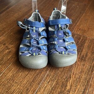 Durable blue sandals. Secure fit with adjustable straps. Ideal for outdoor activities.