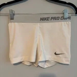 Nike Pro Combat compression shorts in white. Features Dri-FIT technology. Black logo detailing.