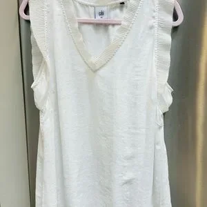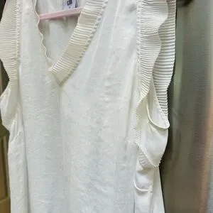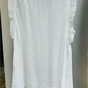 An ultra soft, body-skimming summer top in crisp white with pleating around the V-neck and armholes for an added touch of whimsy.