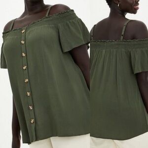 NWT Torrid size 2X green gauze cold shoulder top