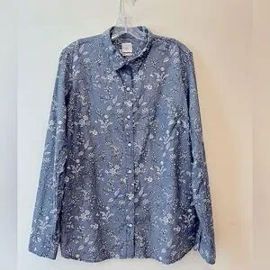 • OLD NAVY FLORAL CHAMBRAY BLUE SHIRT