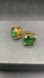 Pierced earrings with prong set green peridot colored glass rhinestones on gold plated/metal alloy two tier base