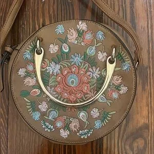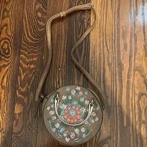 Medium sized Altar’d State brown colored with pastel flowers purse