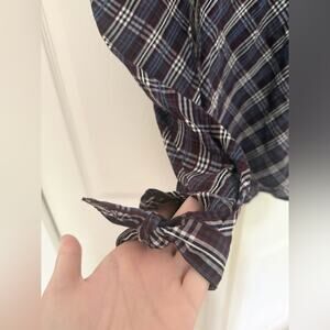 Veronica Beard Isabel Reversed Plaid Blouse Wine Puff Sleeve Blouse Size 0