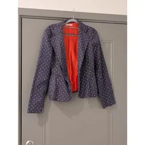 Women's Eclectic Blue White Polka Dot Blazer Size M