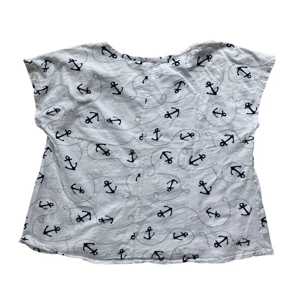 Cotton tee with dark blue anchor graphic against white.