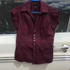 Chic short sleeve design. Button front closure. Versatile for any occasion.