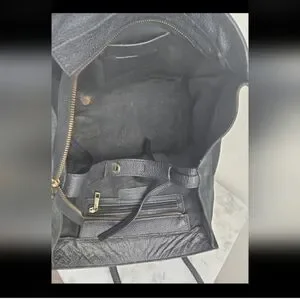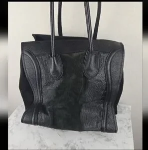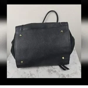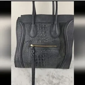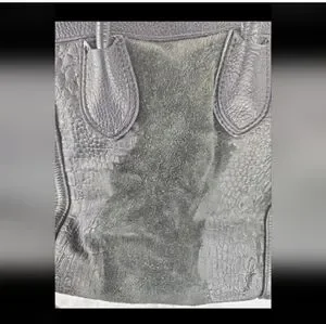 Elevate your style with this chic black tote bag, featuring a luxurious croc-embossed design. Perfect for adding a touch of sophistication to any outfit. the back is suede needs cleaning inside