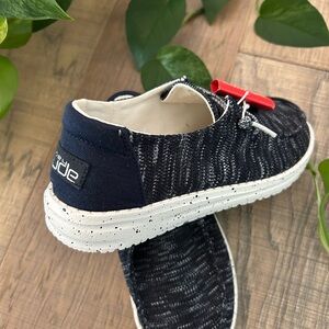 Hey Dude Women’s Navy and White Knit Slip-on Loafers