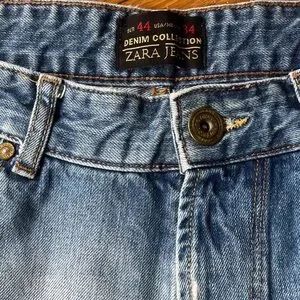 Zara men's blue distressed jeans perfect for a casual look. Comfortable fit with a trendy design.