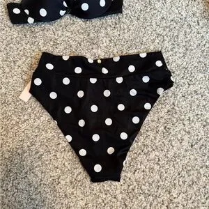 Chic bikini with bold polka dots. Classic black and white design. Ideal for stylish beach days. Tags attached. Never worn. See photos for pattern and product details. Bottoms size Medium, top 34A with removable push up pads.