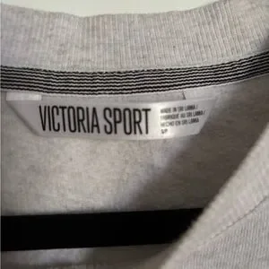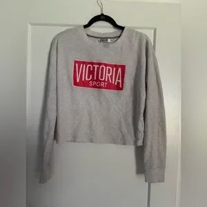 Stylish gray sweatshirt with bold red Victoria Sport logo. Ideal for casual outings.