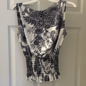 Chico's Black and White Floral Sleeveless Blouse