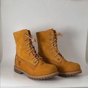 Timberland lace up boots. Cozy fleece lined footwear. Perfect for warmth and comfort.