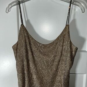 Night Way Gold Sheath Gown with Rhinestone Straps Size 8