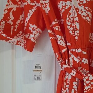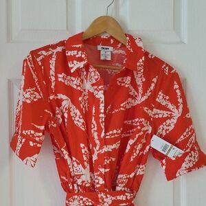 DKNY Darker Orange and White Midi Dress With Tie Lightweight 3 Button New