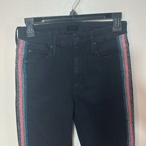 Mother black The Looker high waisted ankle fray jeans in Guilty Glitter Racer, Size 26. Excellent, gently preloved condition!