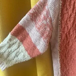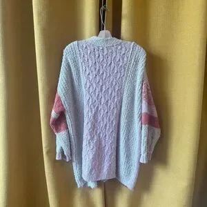 Chic and cozy cardigan with button-up front. Nubby texture throughout. See closeup photos for example of wear..