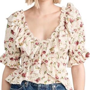 Free People FP Women’s Aster Floral Favorite Girl Ruffled Smocked Top Large L