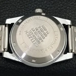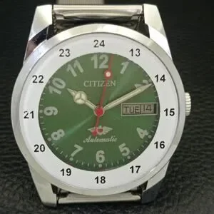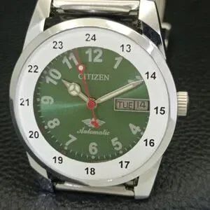 Vintage 1976 Citizen Automatic Mens Silver Watch W/daydate & Green accents