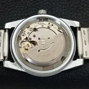 This watch has a stainless steel case in great condition with almost no flaws. The face features Silver accents on a Green Face giving an awesome vintage look overall. It also has a date function!