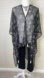 This black sheer kimono with a white paisley print is the perfect lightweight layering piece.