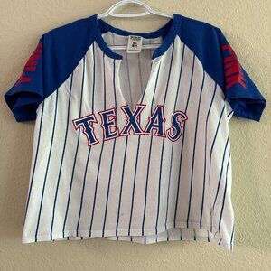 Lot of 3 Texas Themed Women's T shirts. Nike University of Texas Longhorns T-shirt size Large, chest 36", length 24". Victoria's Secret Pink Texas Ranger cropped T-shirt size Large, chest 38", length 19". Brown Deep Ellum Graphic T-shirt size Medium, chest 38", length 25". Excellent condition. Small stain on the bottom front of Texas Rangers crop top. Clean, smell good. Smoke-free home.