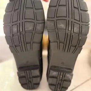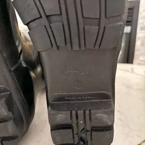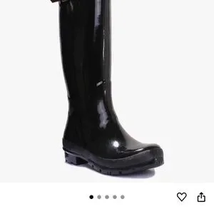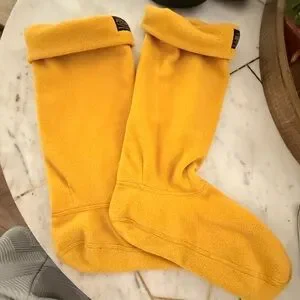 EUC. Sleek black boots featuring vibrant yellow trim. Ideal for wet weather. Matching boot liner included.