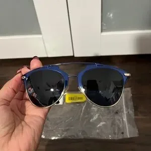 Elegant Dior sunglasses with blue frames and gold detailing. Ideal for a sophisticated style.