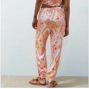 Zara The Sasha Pink Orange Satin Printed Tapered Tie Hem Pants size S