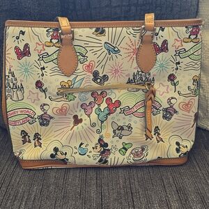 Charming Disney-themed tote by Dooney & Bourke. Features playful character designs. Perfect for Disney lovers.