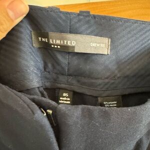 Sophisticated dark blue pantsuit by The Limited. Ideal for office wear. Tailored fit enhances elegance. Wore it one time for an interview it’s been my emergency suit for a while but it no longer fits me.