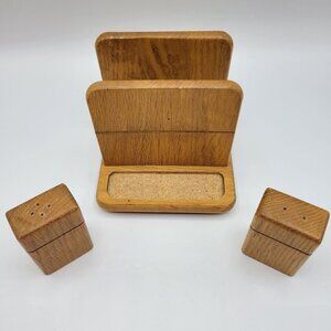 Vintage Kamenstein Wooden Salt & Pepper Shakers With Napkin Holder Thailand