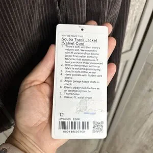 Lululemon Scuba Track Jacket Velvet Cord Full Zip Brown Color Size 12 NWT