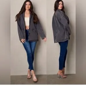 Stylish faded black denim button closure jacket. Perfect for casual wear.