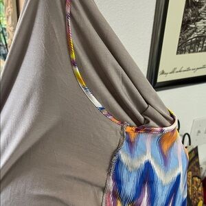 Stylish shawl with a vibrant zigzag pattern. Features a mix of colors with gray accents.