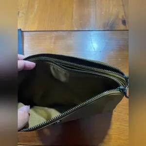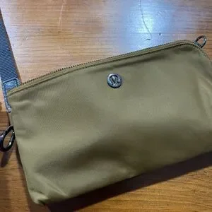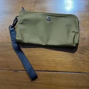 excellent preowned condition lululemon athletica Camel Brown Double Zip Wallet Wristlet Pouch. Compact and stylish wristlet. Features a khaki color with a secure zip closure. Ideal for daily essentials.