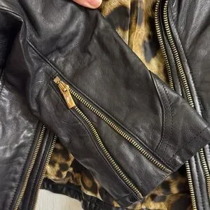 Cache Black Leather Jacket with Leopard Lining