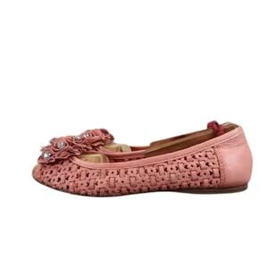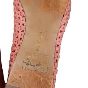 Used Report Shoes Womens 7 Flats Slip On Woven Peep Toe Ruffle Embellished Fashion