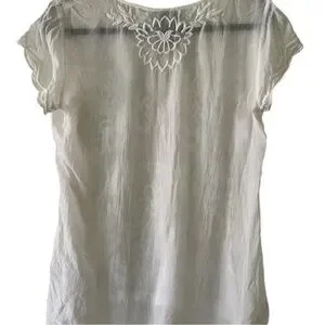 008 JW // Johnny Was Cream Floral Embroidered Blouse // XS